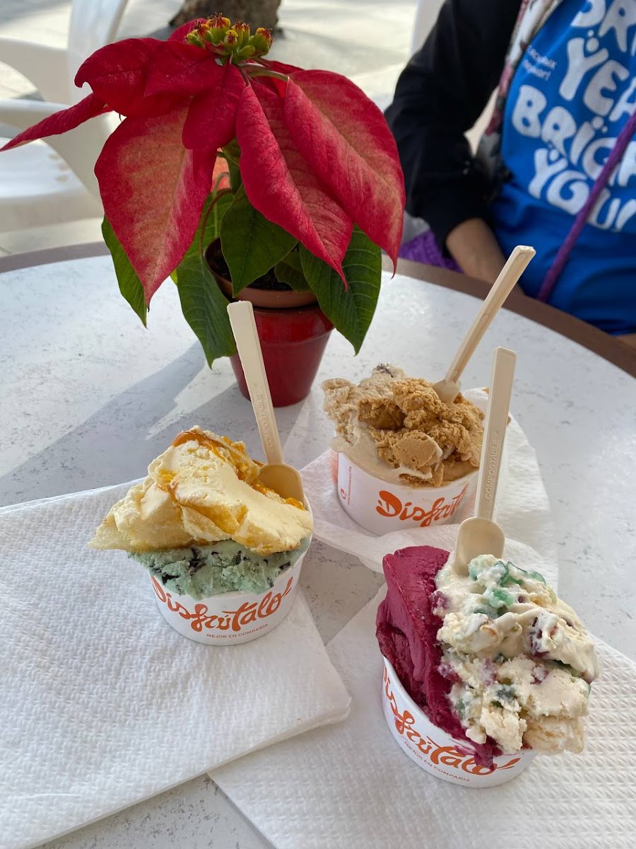 The delicious offering doesn’t stop at ice cream; you can also relish perfectly brewed coffee and a variety of other refreshing beverages. For those looking for something special, why not take Jim Macfarlane’s advice and enjoy a glass of white wine paired with the sweet surroundings? If you prefer non-alcoholic options, try the agua con gas with a slice of lemon – a refreshing drink that complements the gelato perfectly.